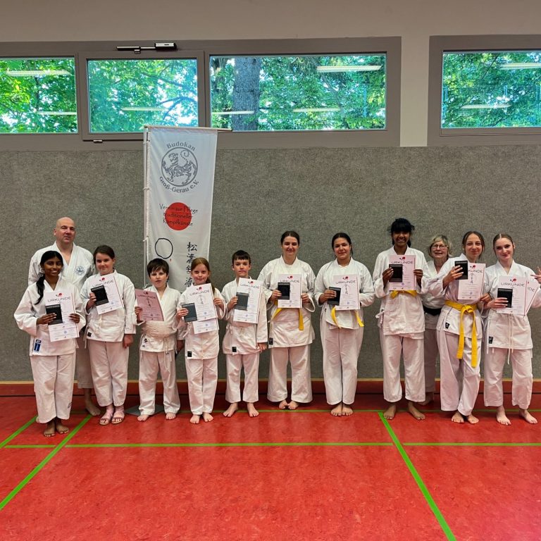 Herzlichen Glückwunsch nochmals an alle erfolgreichen Prüflinge! Wir freuen uns darauf, euren weiteren Fortschritt und Erfolg im Budokan Groß-Gerau zu verfolgen.
