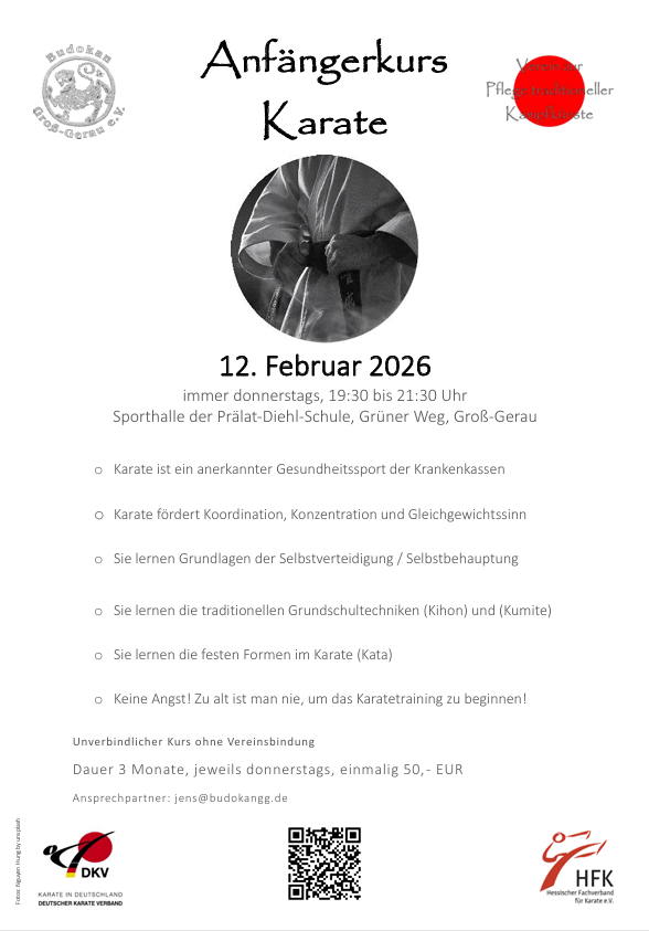 Der Budokan Groß-Gerau e.V. lädt herzlich zu einem neuen Anfängerkurs in Karate und Selbstverteidigung ein!
